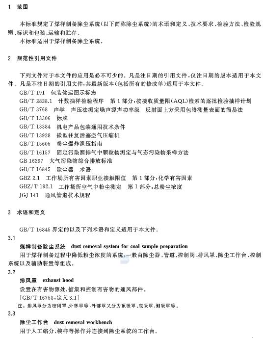 國(guó)標(biāo):《煤樣制備除塵系統(tǒng)通用技術(shù)條件》